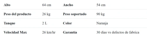 64 cm 54 cm 90 kg 26 kg 2 L 35 km/hr